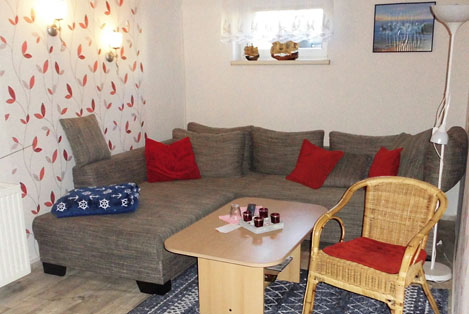 Angenehmes Raumklima im Sommer, da die Räume nicht so stark aufheizen, im Winter kühlt die Wohnung durch die Nähe zum Erdreich nicht so stark aus. Die Wohnung ist durch eine überdachte Treppenanlage von außen erreichbar. Im Garten ist eine kleine Sitzecke vorhanden. Die Wohnung wird auch gerne von Hundebesitzern gebucht.